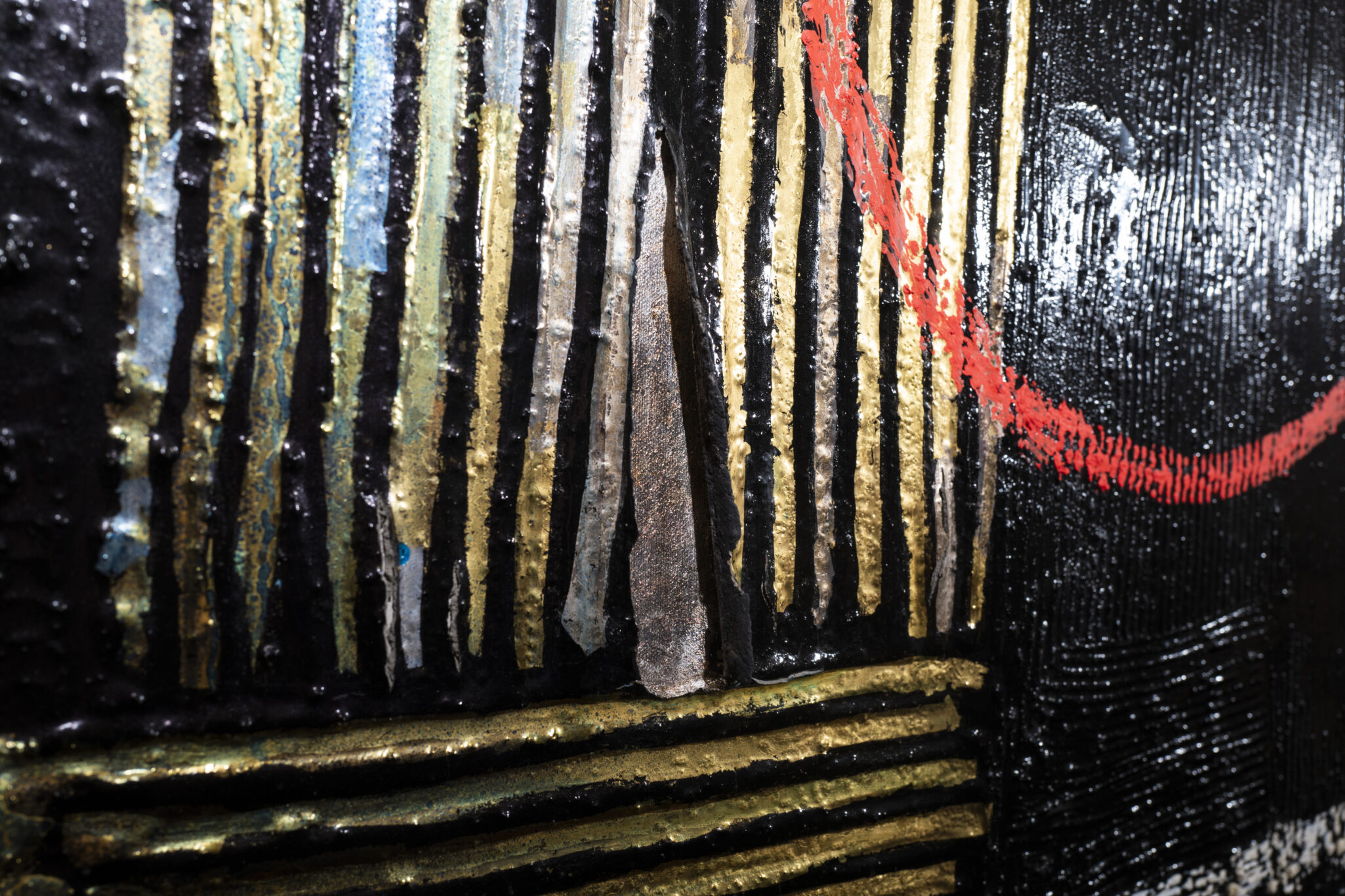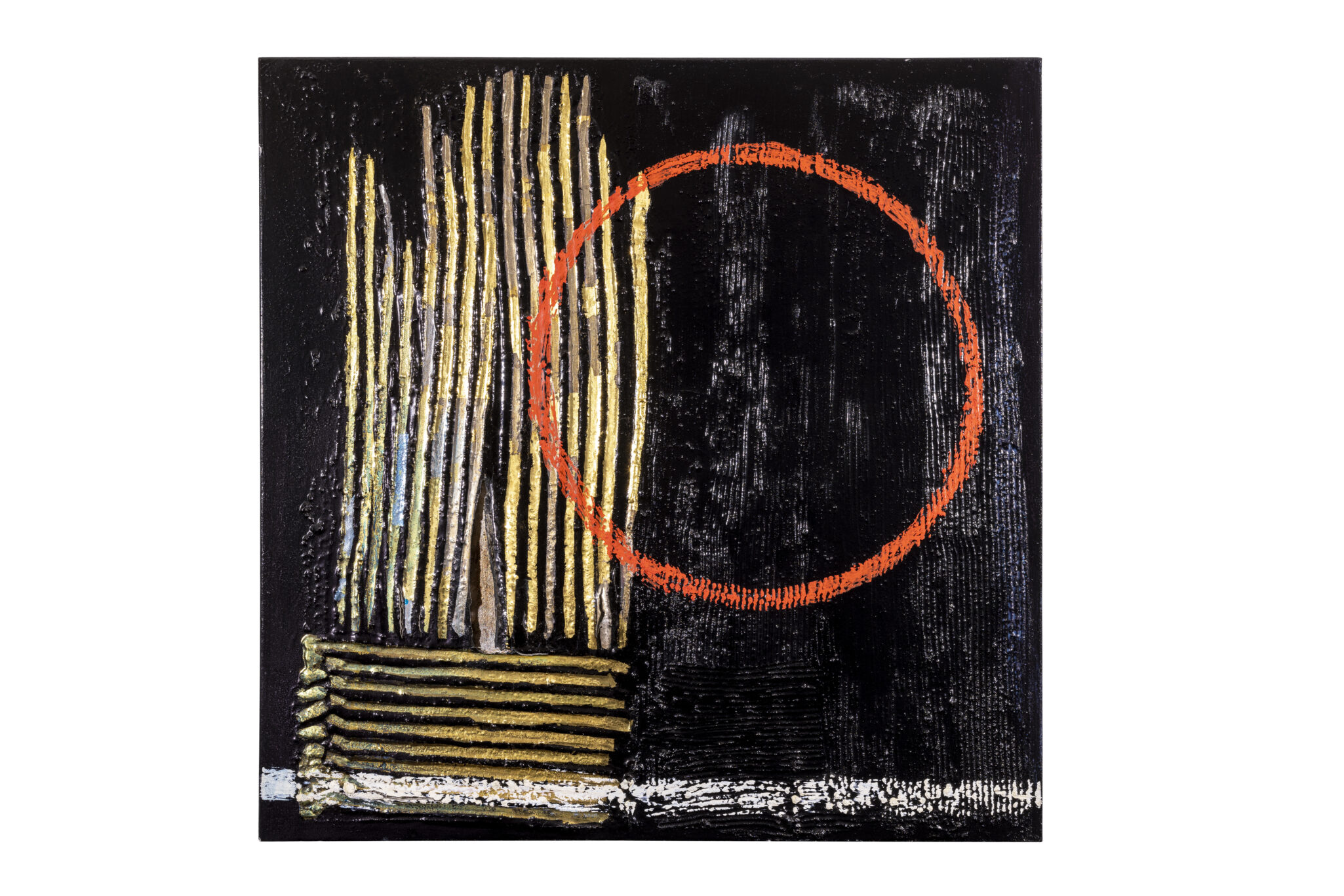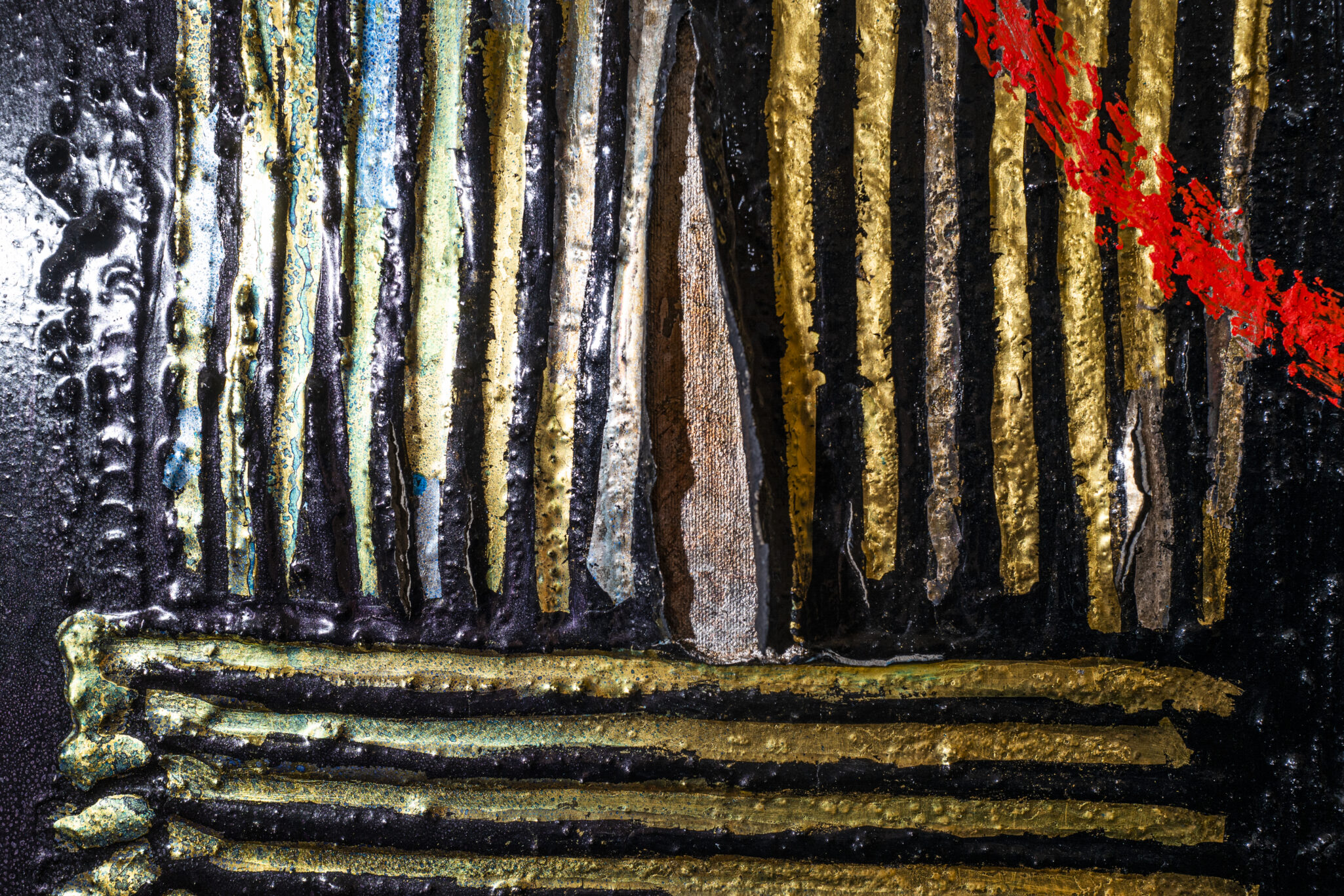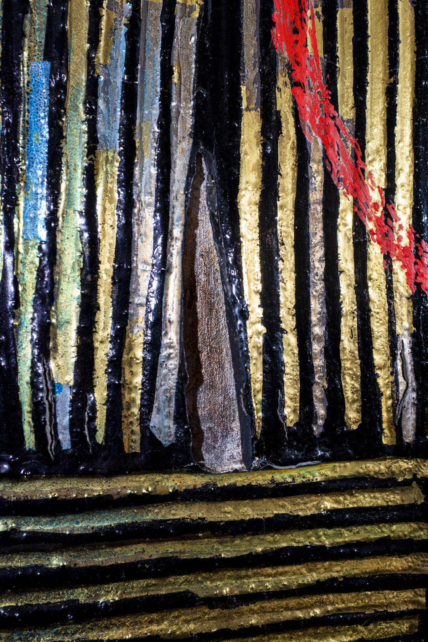 Lo studio e l’utilizzo scrupoloso di materiali vecchi e nuovi testimoniano che Rovelli continua la sua ricerca di una dimensione concreta, corporea e tangibile dell’opera attraverso un lungo processo di creazione.